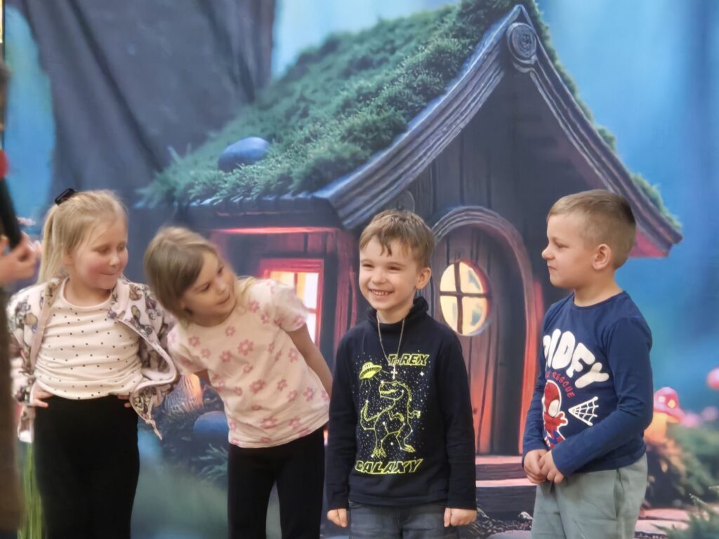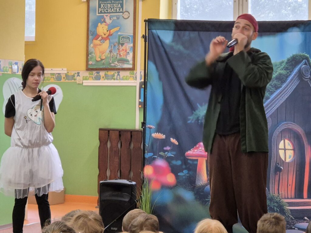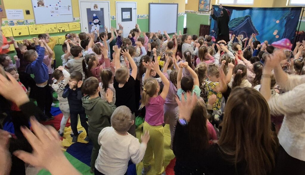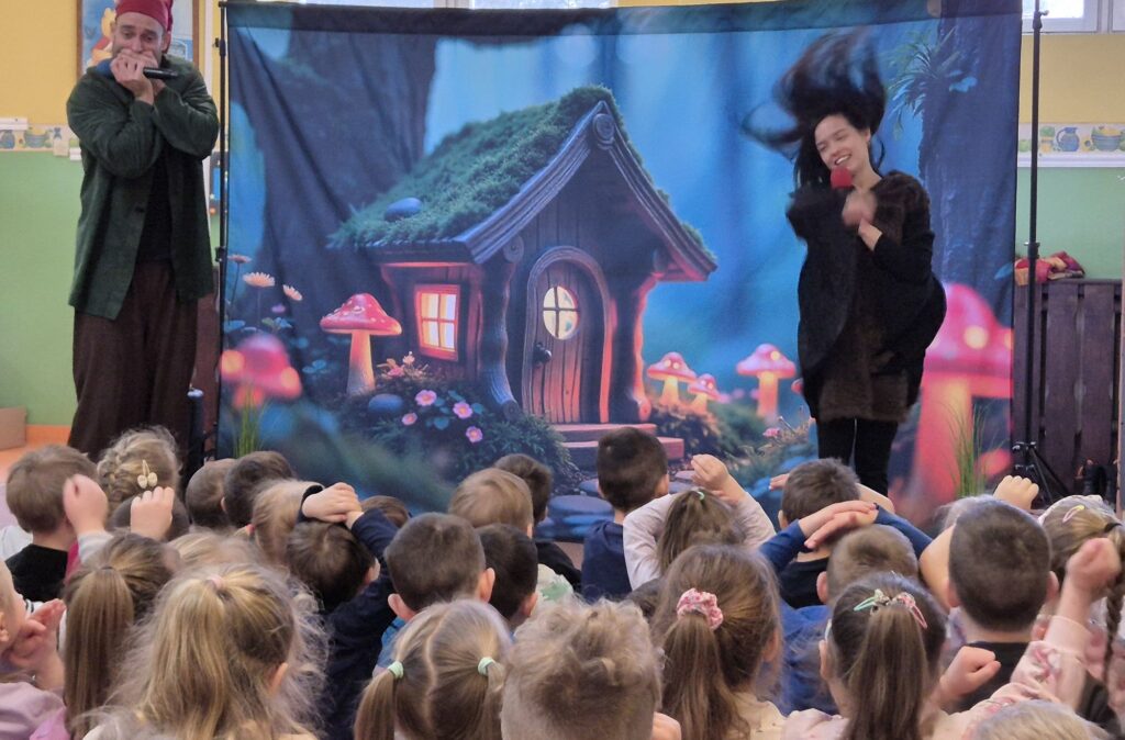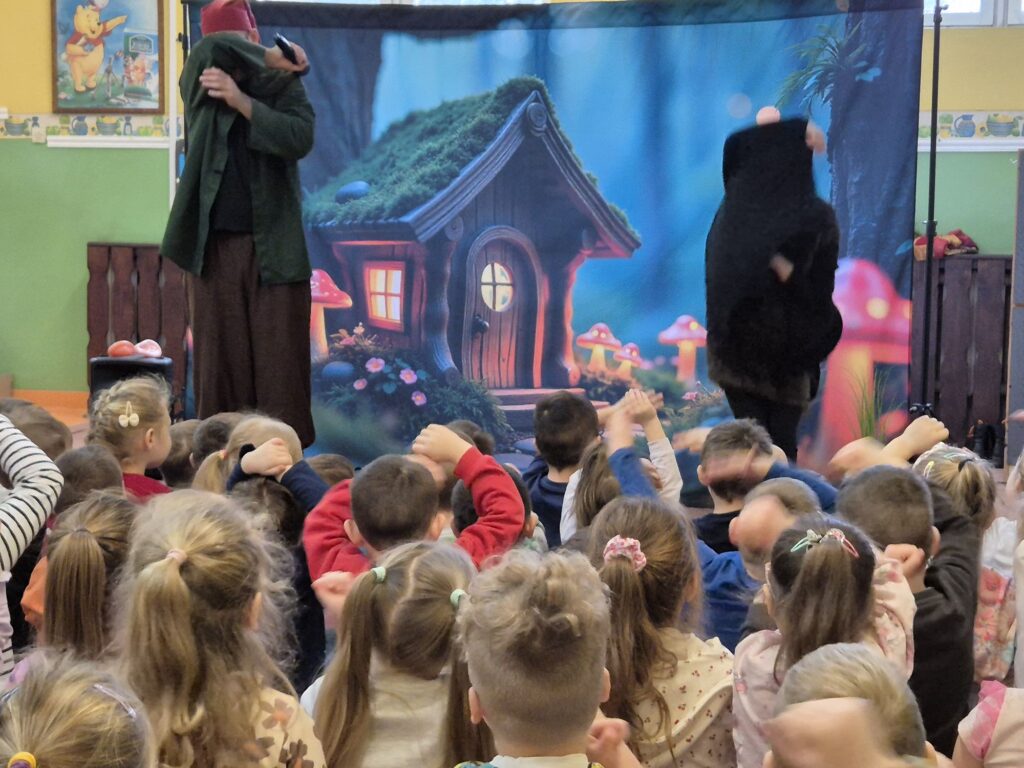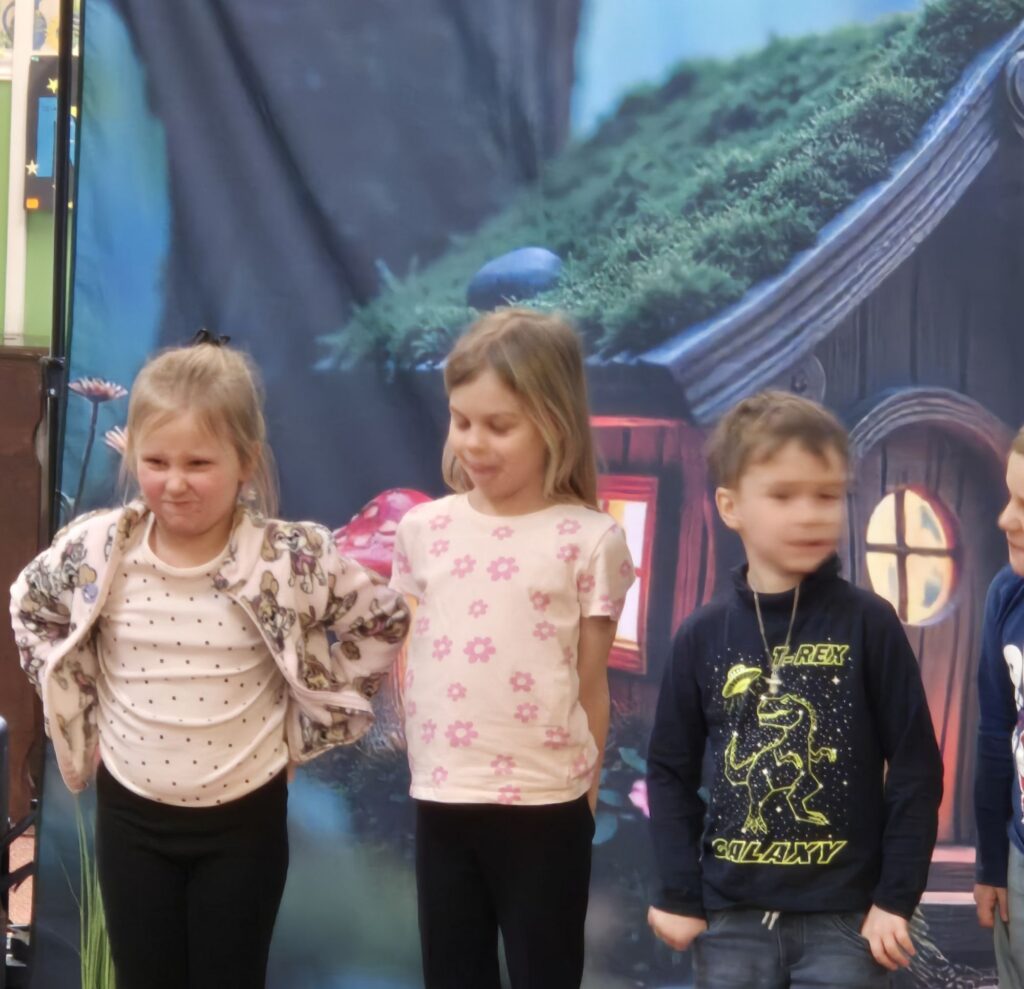 w przystępny i radosny sposób uczyły się rozpoznawania i nazywania emocji, okazywania empatii wobec innych, a także poznawały zasady zdrowego odżywiania, o których przypomniała Wróżka Zębuszka. Przedstawienie dostarczyło mnóstwo radości – nie zabrakło śmiechu, tańca, muzyki i aktywnego udziału dzieci, co stworzyło wyjątkową, pełną pozytywnej energii atmosferę.
