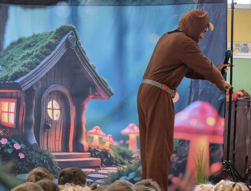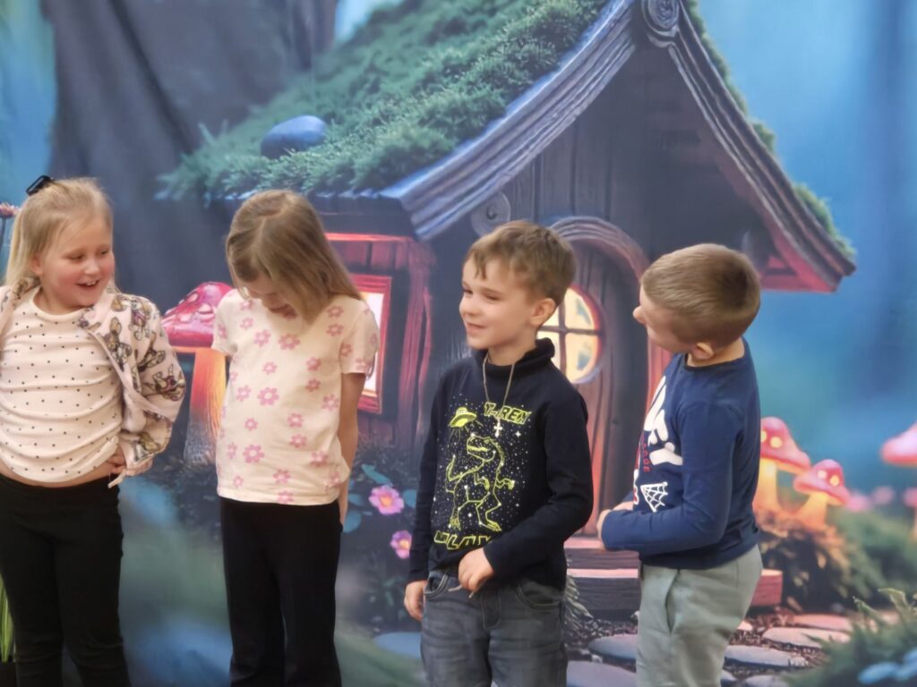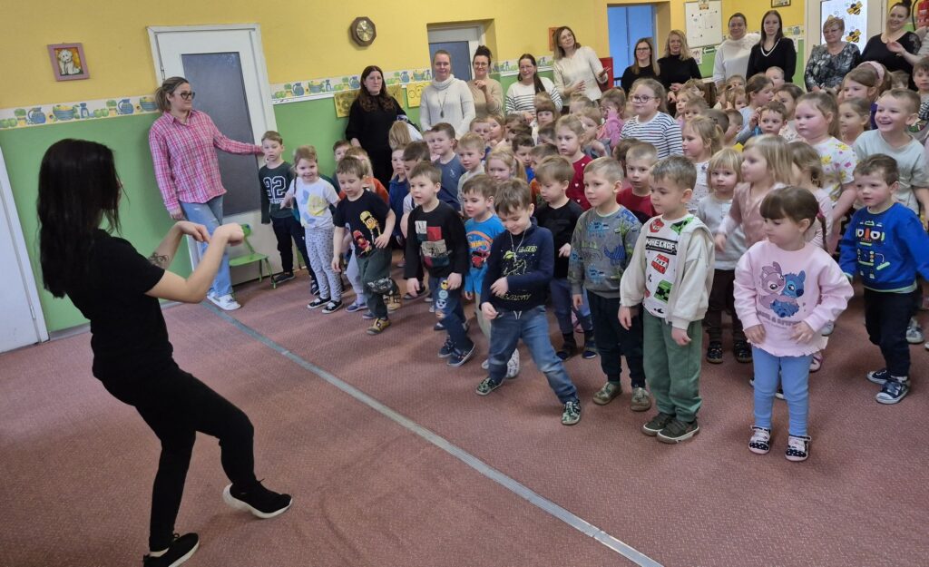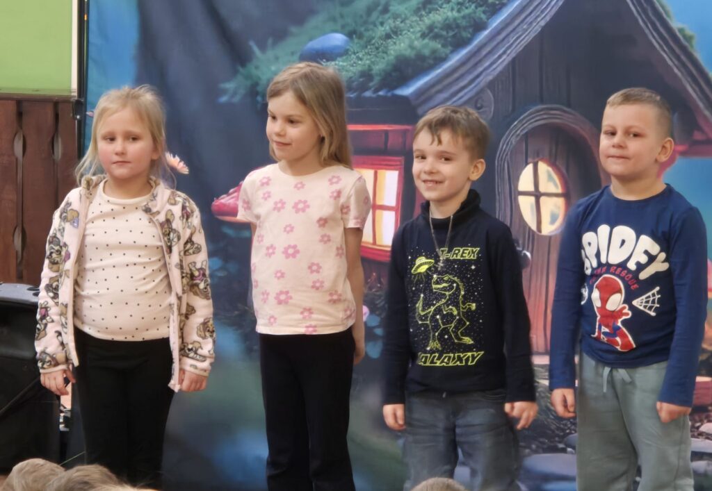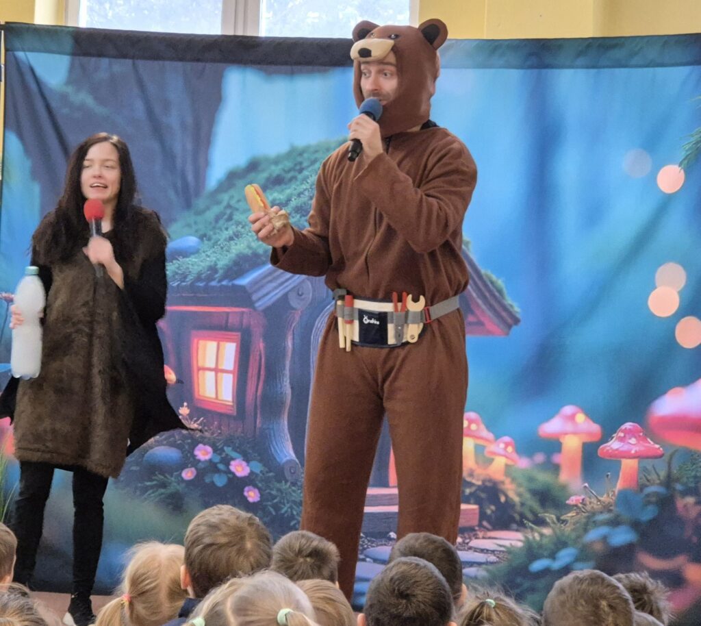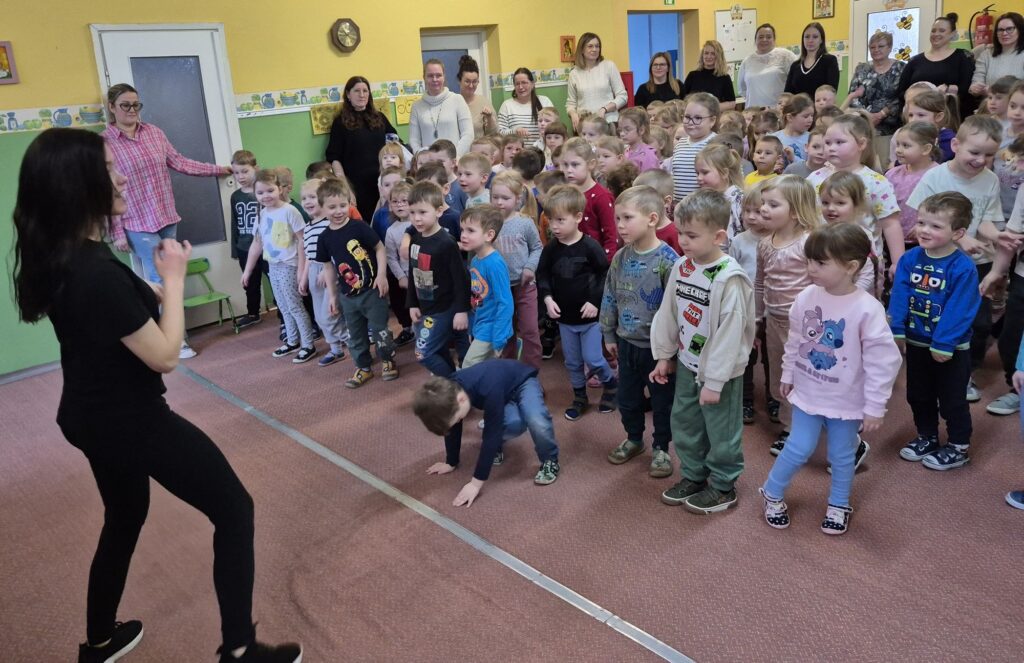 w przystępny i radosny sposób uczyły się rozpoznawania i nazywania emocji, okazywania empatii wobec innych, a także poznawały zasady zdrowego odżywiania, o których przypomniała Wróżka Zębuszka. Przedstawienie dostarczyło mnóstwo radości – nie zabrakło śmiechu, tańca, muzyki i aktywnego udziału dzieci, co stworzyło wyjątkową, pełną pozytywnej energii atmosferę.