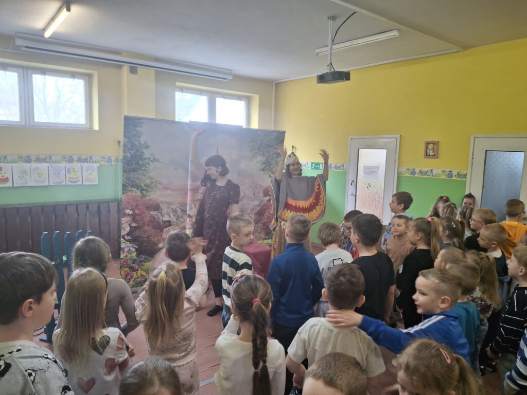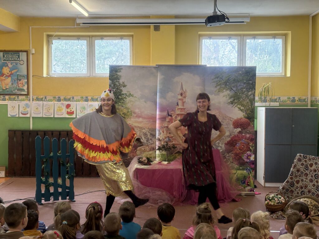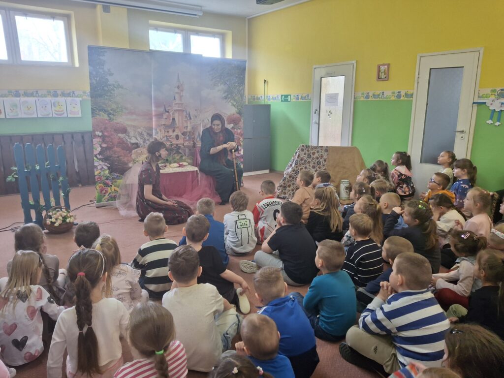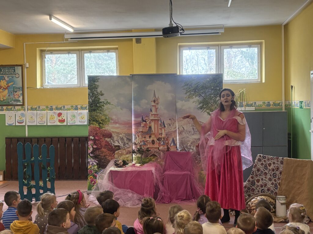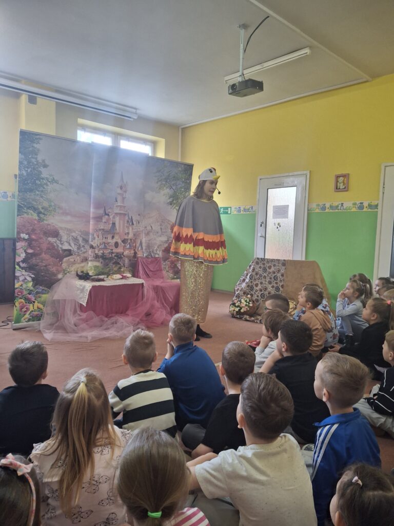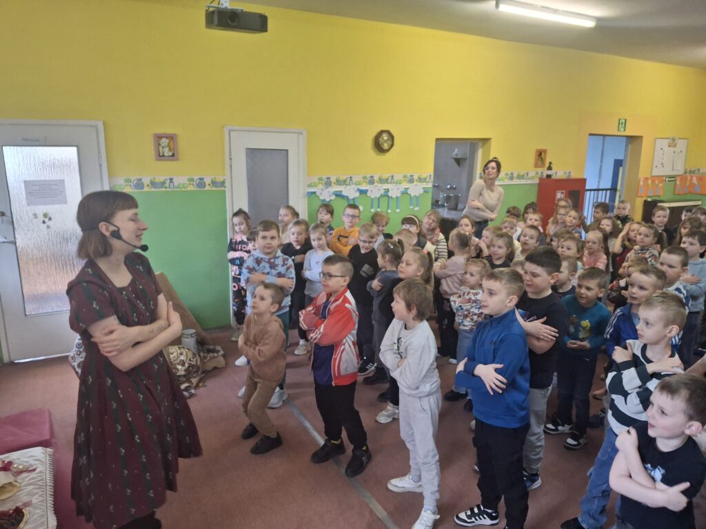 Dnia 26 marca w naszym przedszkolu obchodziliśmy Dzień Teatru. Z tej okazji odwiedził nas objazdowy „Teatr Bajeczny” z Bydgoszczy, który zaprezentował wyjątkowy spektakl pt. „Pozytywka”. Przedstawienie wprowadziło naszych przedszkolaków w świat wyobraźni, muzyki i pięknych wartości. Dzieci z ogromnym zainteresowaniem śledziły losy bohaterów, żywo reagowały na to,co działo się na scenie, a także nagradzały artystów wielkimi brawami. To była wspaniała zabawa, ale również cenna lekcja wrażliwości, przyjaźni oraz wiary w siebie. Dziękujemy za kolejne spotkanie pełne emocji i teatralnych wzruszeń! Już nie możemy doczekać się następnej wizyty!